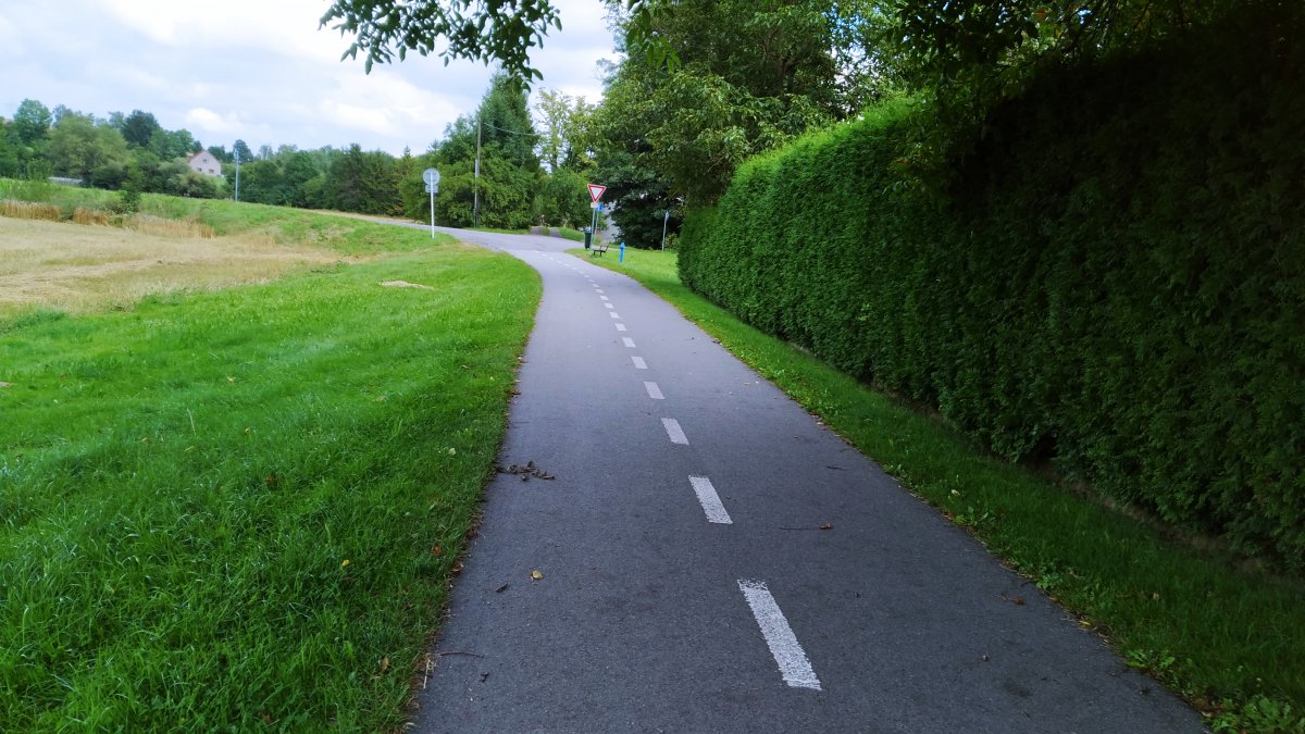 Od Šibeňáku ke Štítu, skrz Nedošínský háj do Tržku a po cyklostezce zpět na Šibeňák. Celkem 6,8 km, odkaz na Mapy.cz zde.