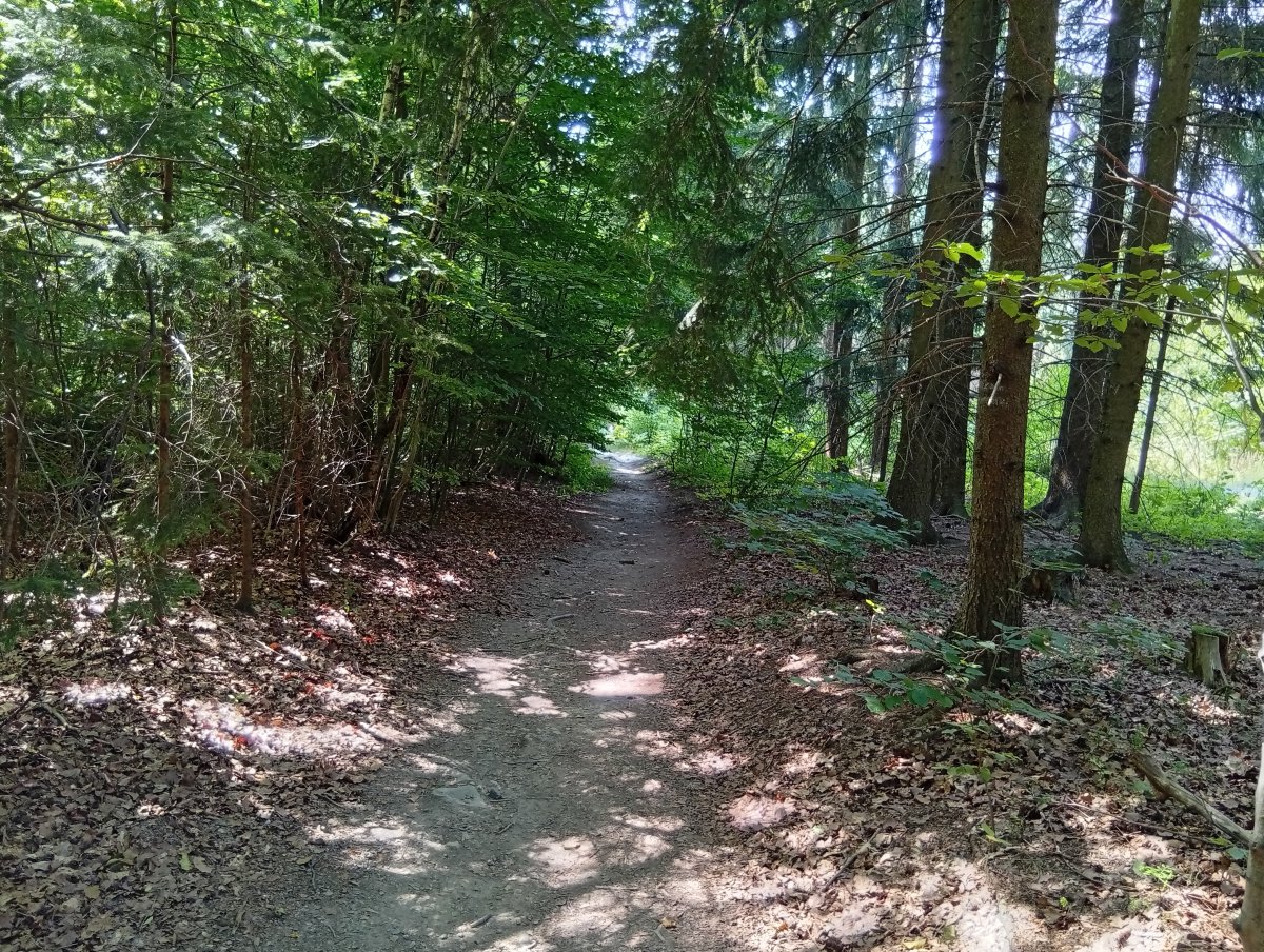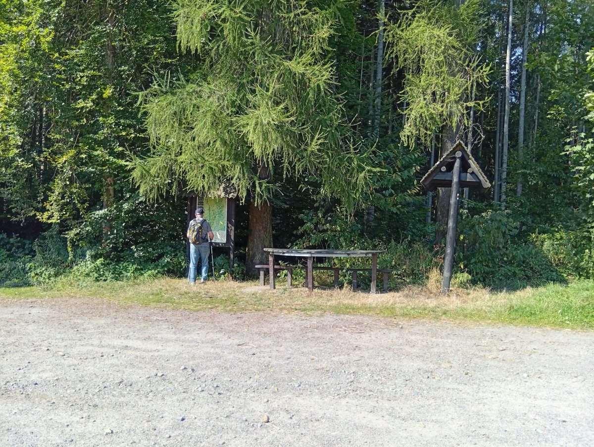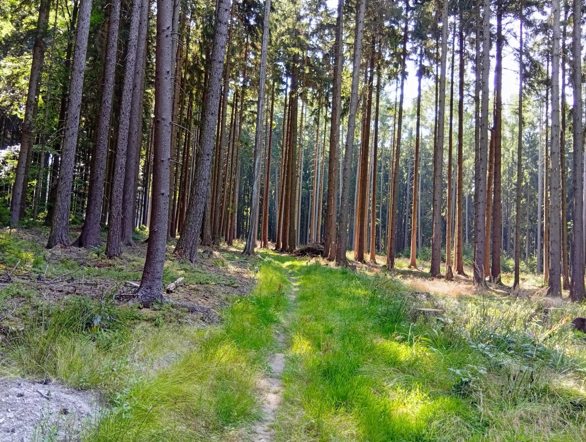 Příjemná procházka prakticky celá lesem, v první části trochu náročnější stoupání, zbytek po rovině.