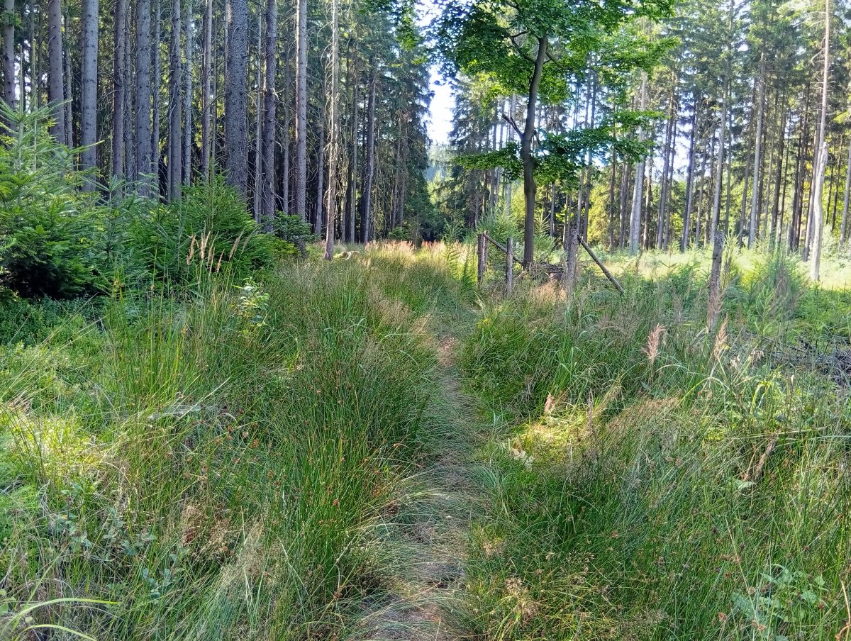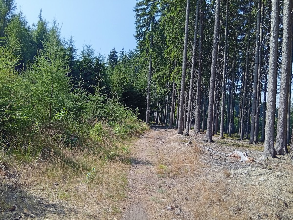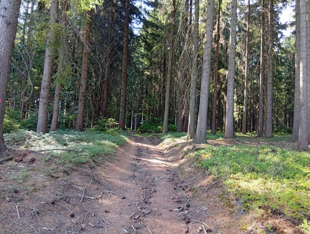Druhá část - 7 km po červené značce od Dětřichovské hájenky k restauraci U Tety na Hřebči.
